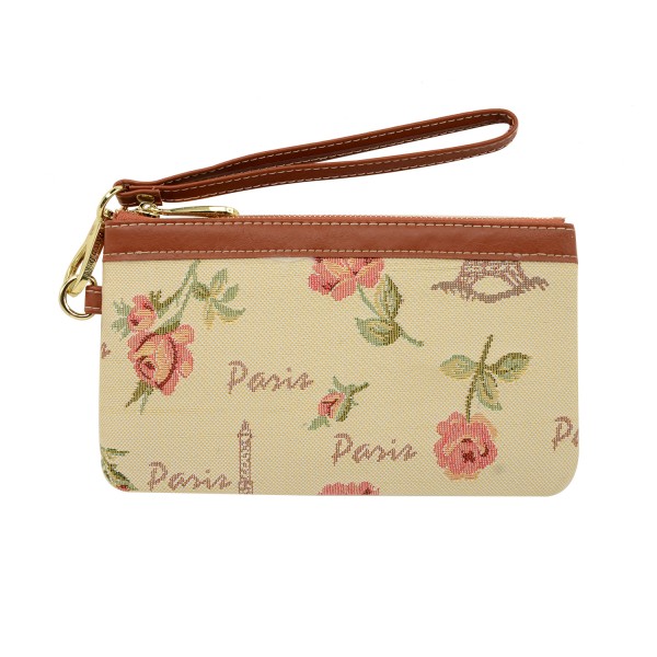 1 pièce(s) par paquet.Composition: 100% polyesterModèle: roseCouleurs: beigeDimention(cm): 20*11portefeuille en tissu tapisserie,un grand compartiment principal, 1 pochet zippée,3 emplacements cartes et 1 poche simple, Il se porte facilement à la main grâce à sa draggone qui est amovible.accessoire de mode.