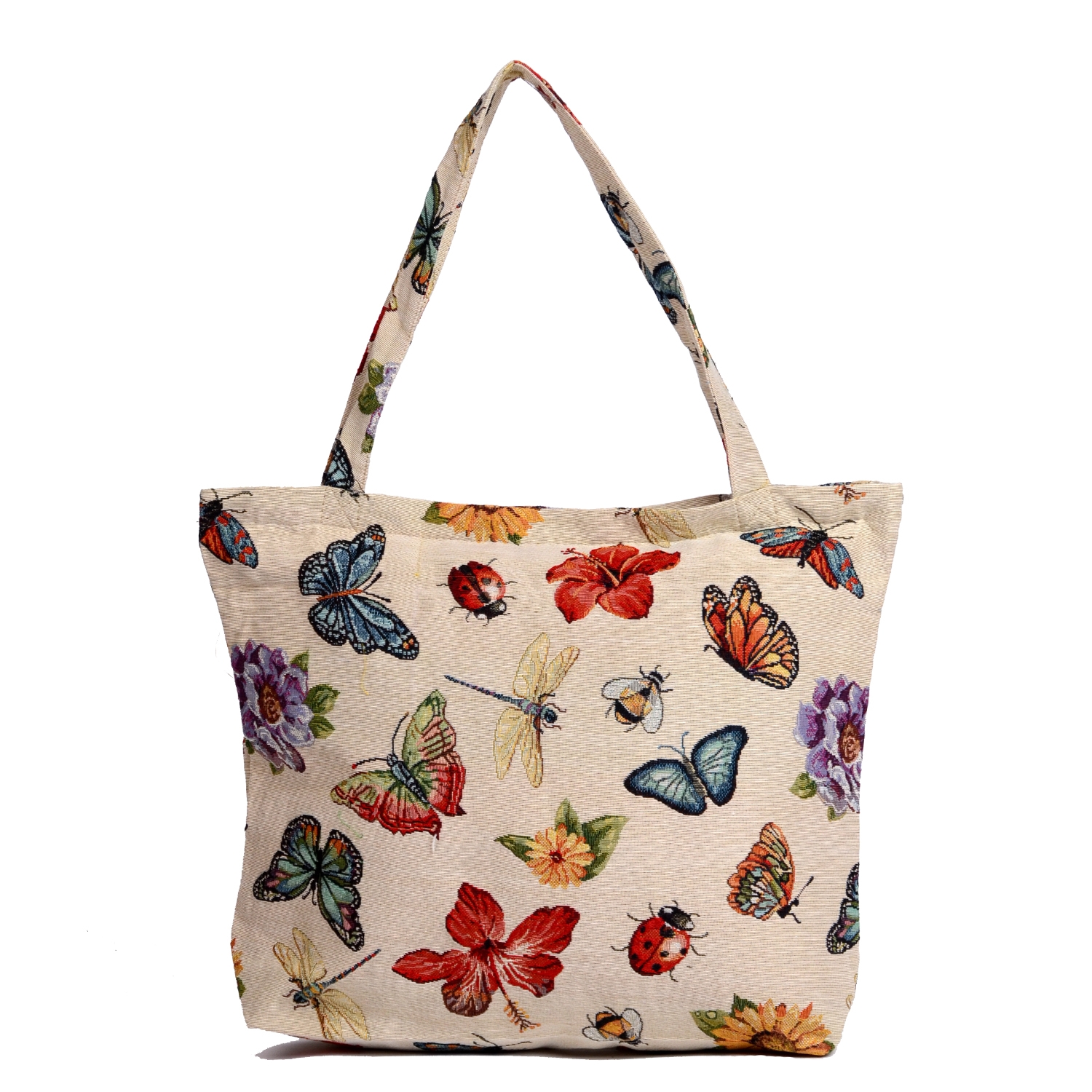 cabas x,sac shopping en tapisseie recto verso,42x45 cm, 40° lavable, motif: papillon, abeille,coccinelle