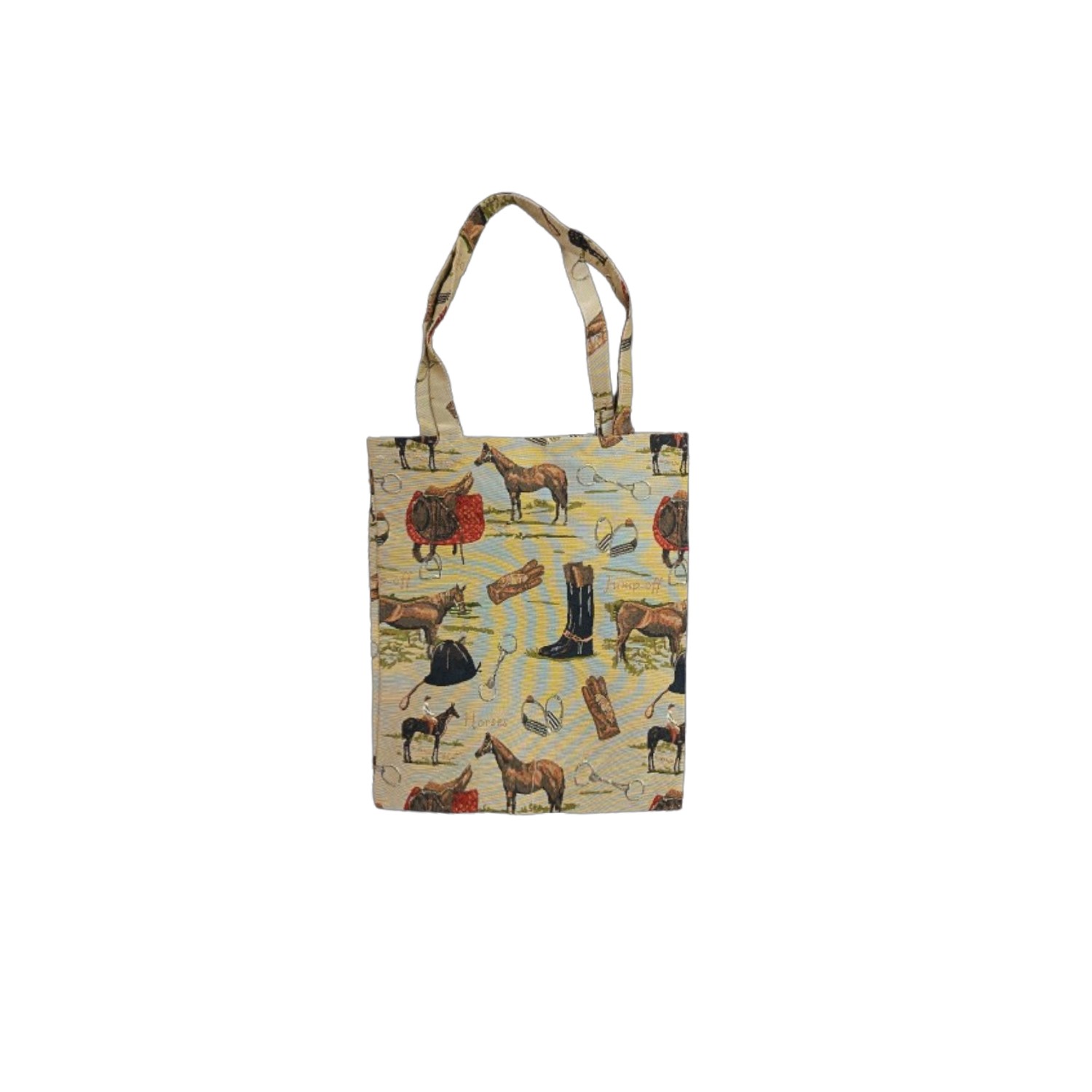 cabas, sac shopping en tapisserie recto verso, motif:chevaux 40° lavable