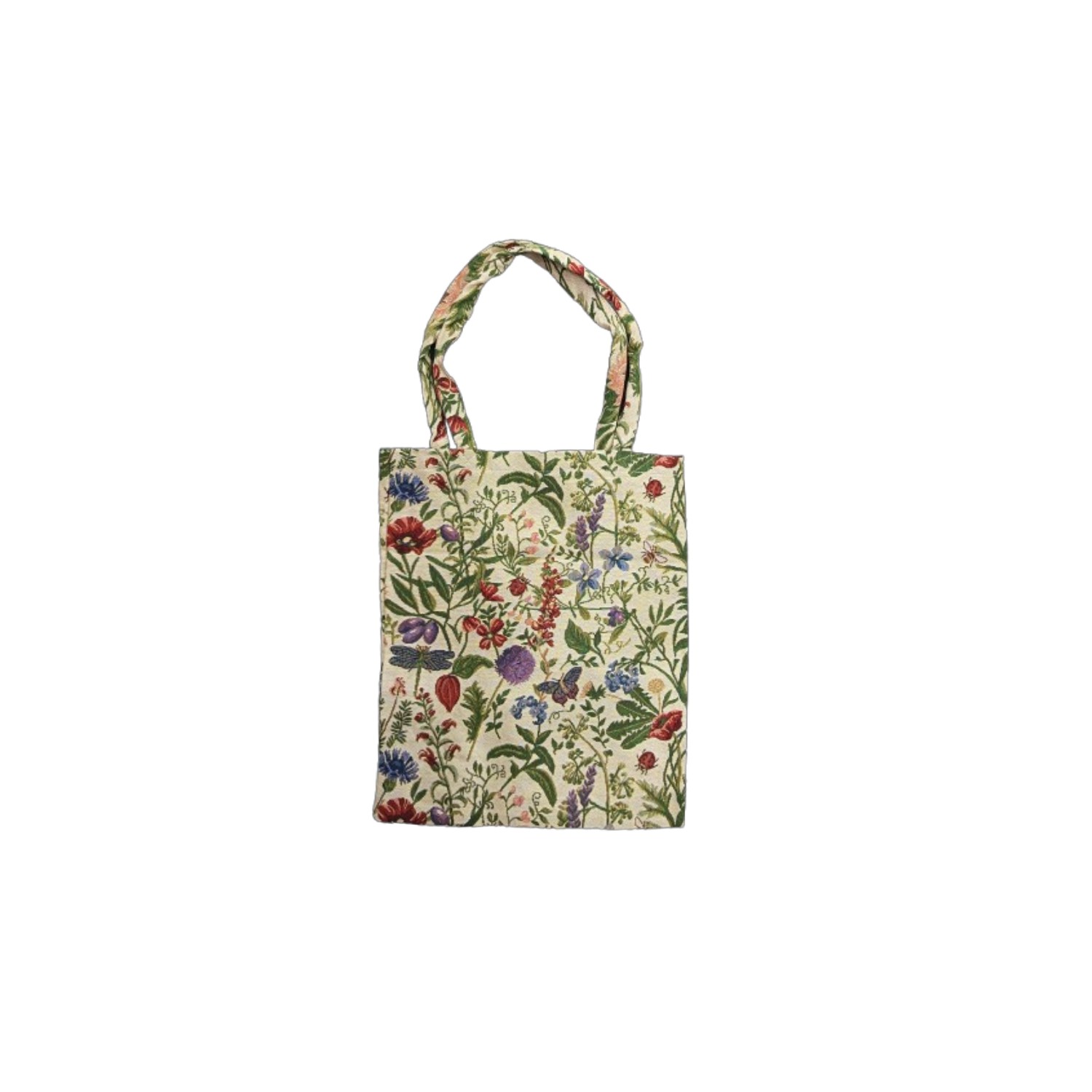 cabas, sac shopping en tapisserie recto verso, motif:fleurs du jardin beige, 40° lavable