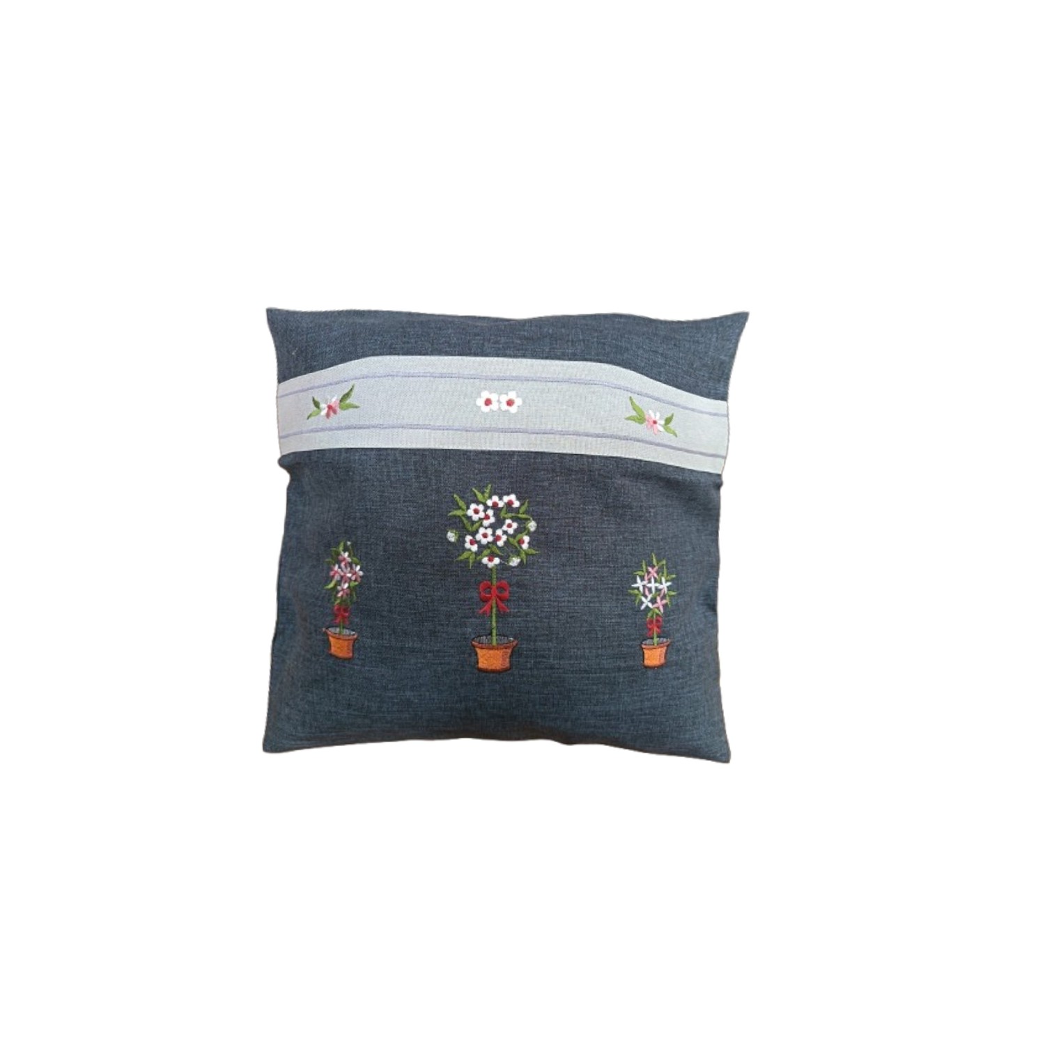 housse de coussin,pot de fleur brodé , fermeture zippée