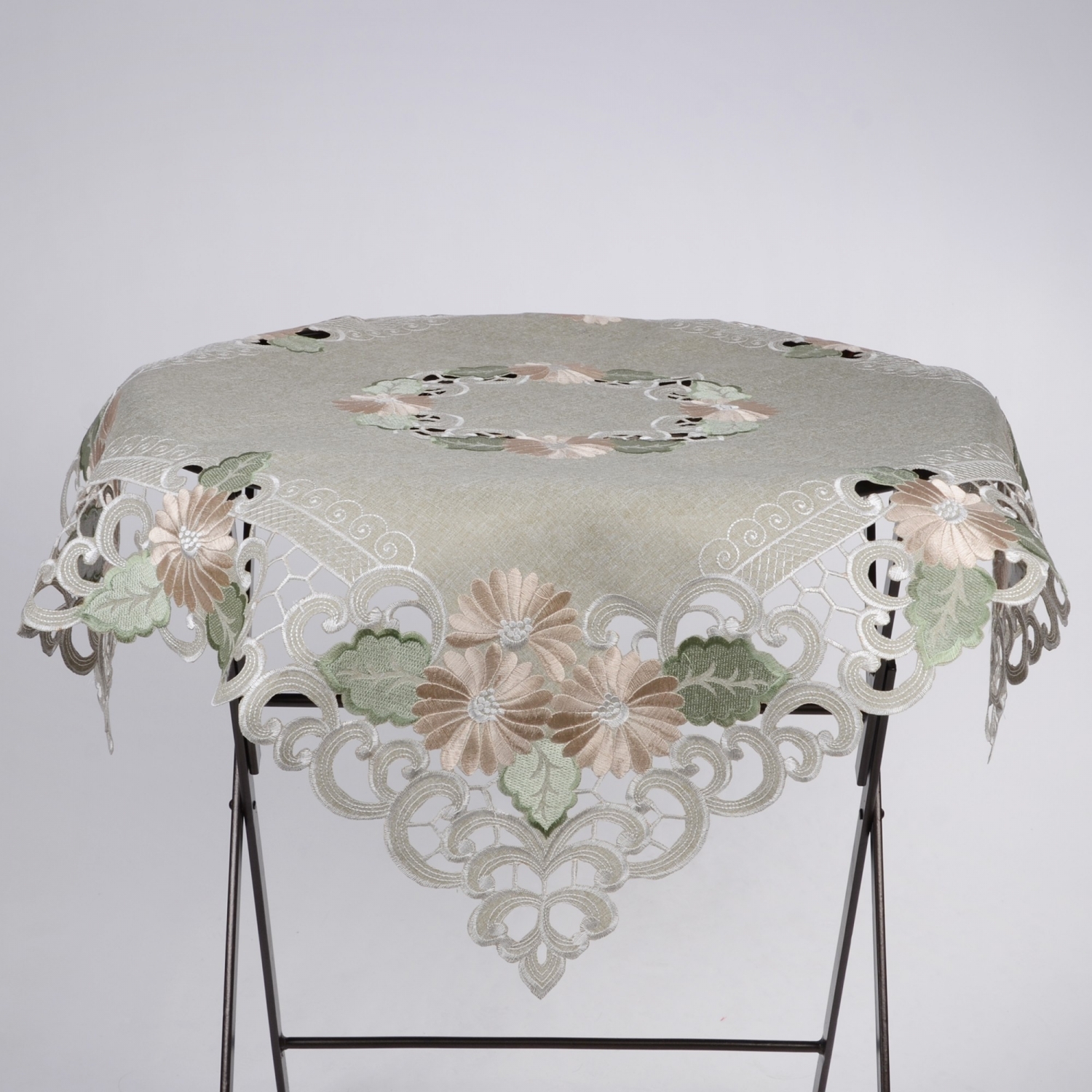 1 pièce(s) par paquet Composition: 80% polyester et 20% lin Modèle: fleur . Couleurs: beige Dimension(cm): 85x85 chemin de table rectangulaire 45x170 45x130 40x110 40x90 35x70 par 6 pièces 35x50 par 6 pièces