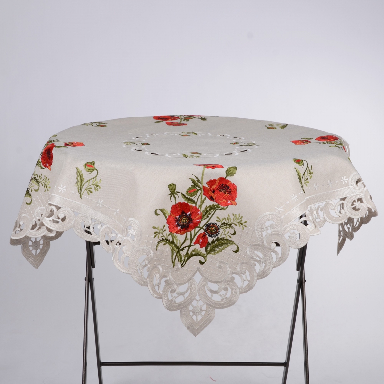 napperon brodé coquelicot fond écru
