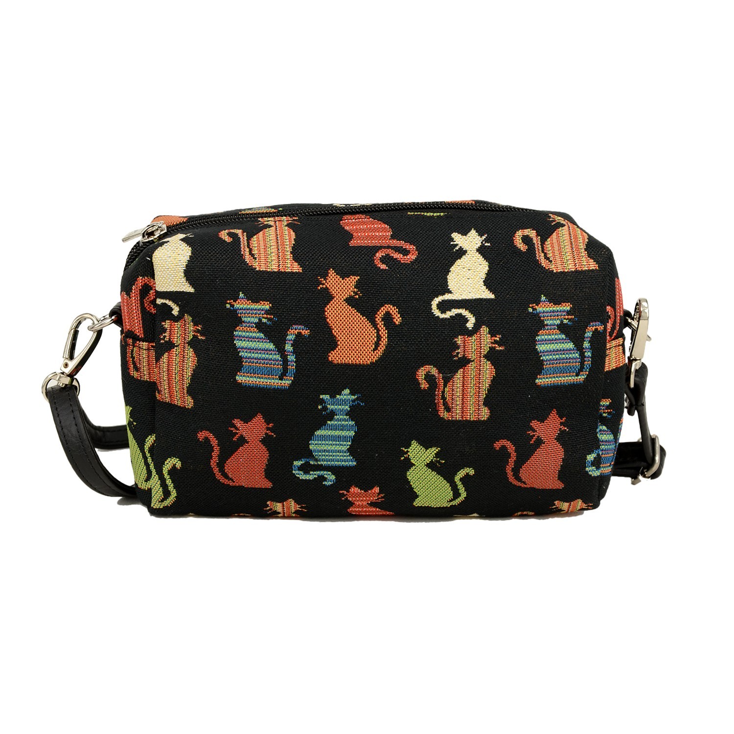 sac bandoulière en tapisserie, 20x7x12.50cm,fermeture: zip,poignée en faux cuir, bandoulière amovible et longueur ajustable motif: chat noir