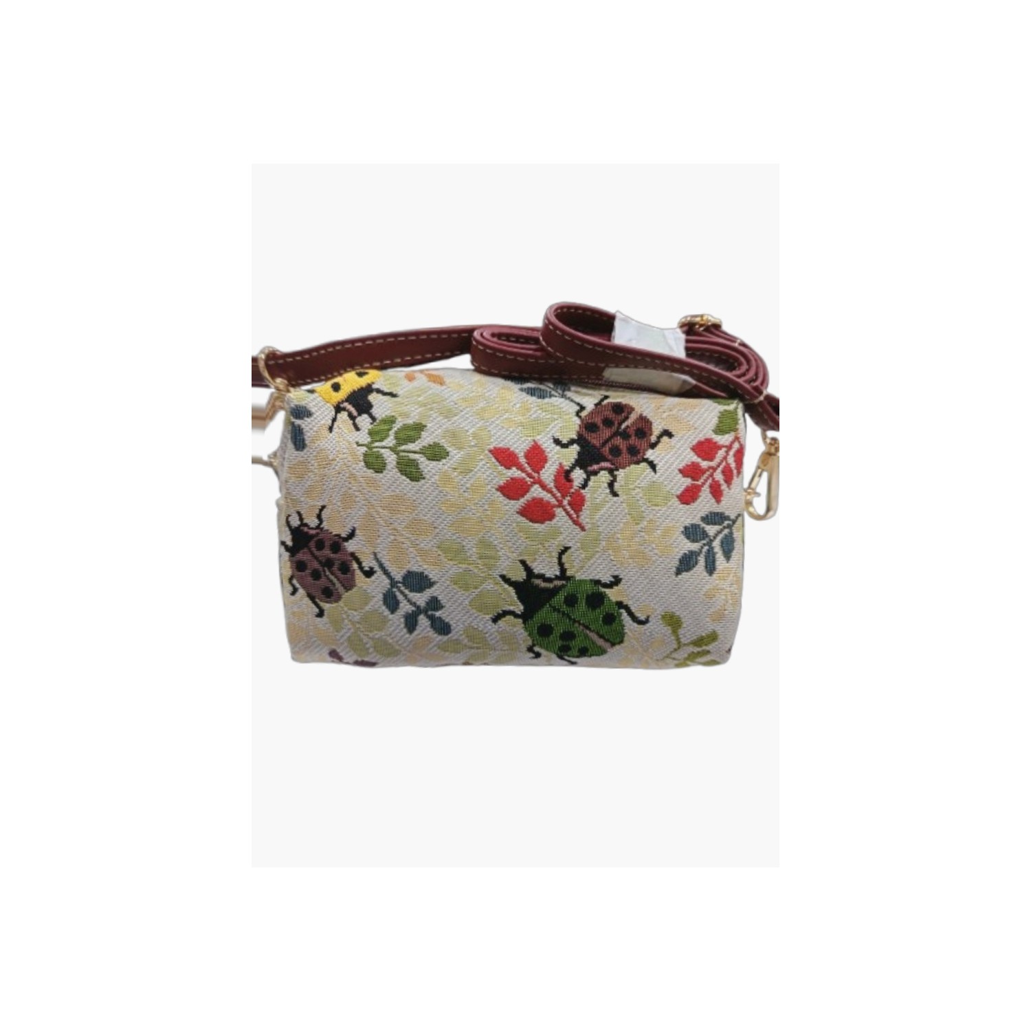 sac bandoulière en tapisserie, 20x7x12.50cm,fermeture: zip,poignée en faux cuir, bandoulière amovible et longueur ajustable motif: coccinelle