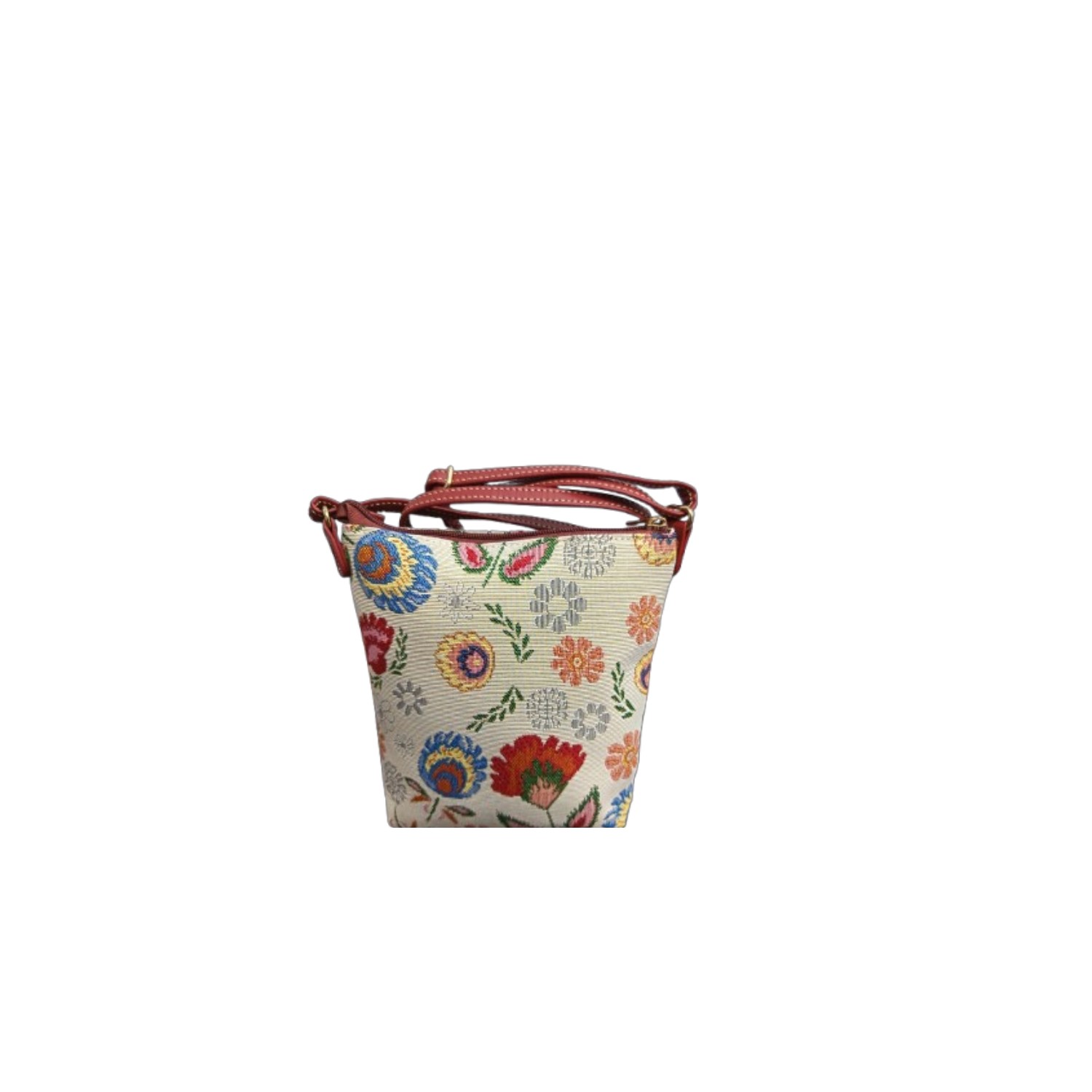 sac bandoulière en tapisserie,fermeture: zip,poignée en faux cuir, bandoulière amovible et longueur ajustable motif: pensée beige