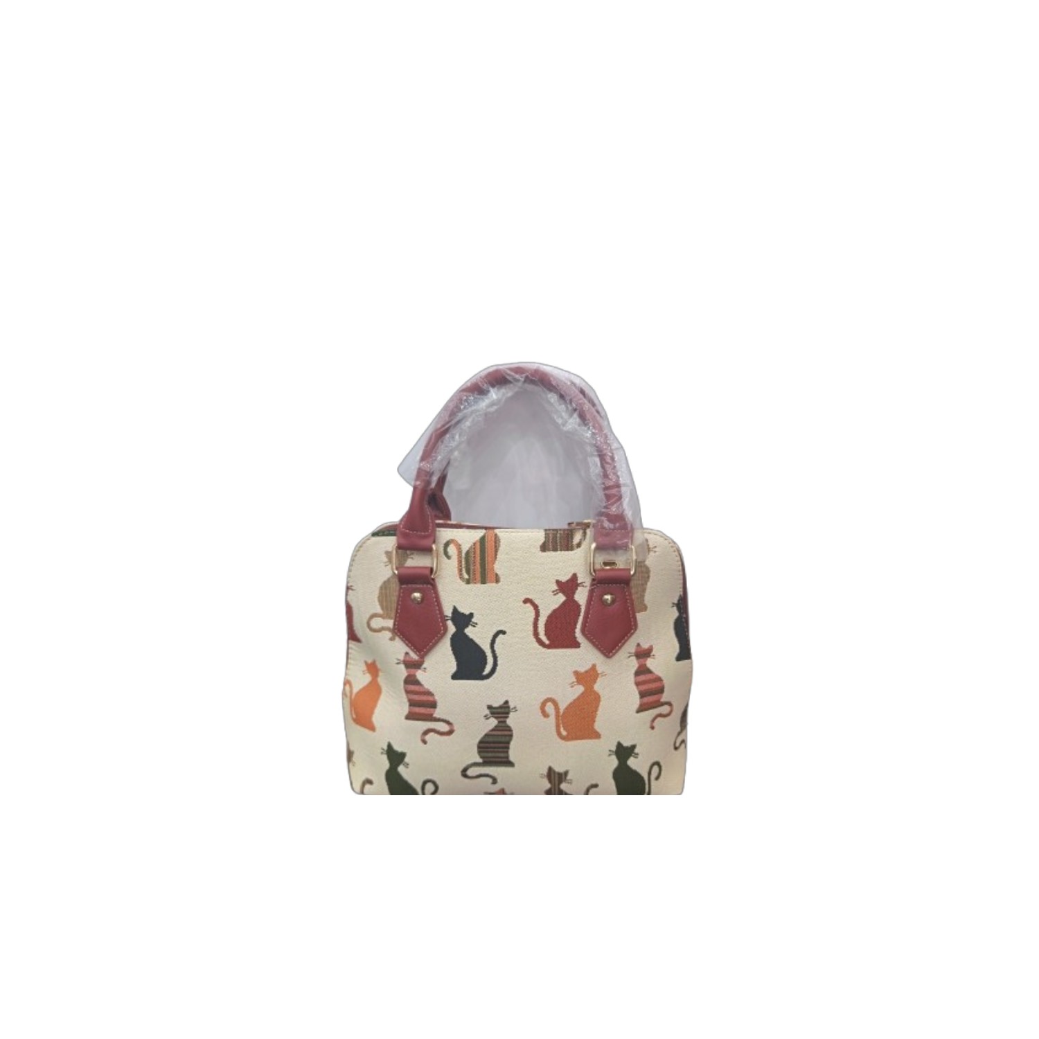 sac à main convertabel (sac bandoulière) poignées et 1 bandoulière amovible en faux cuir ,fermeture à glissière,fermeture intérieure de la poche,motif: chat beige