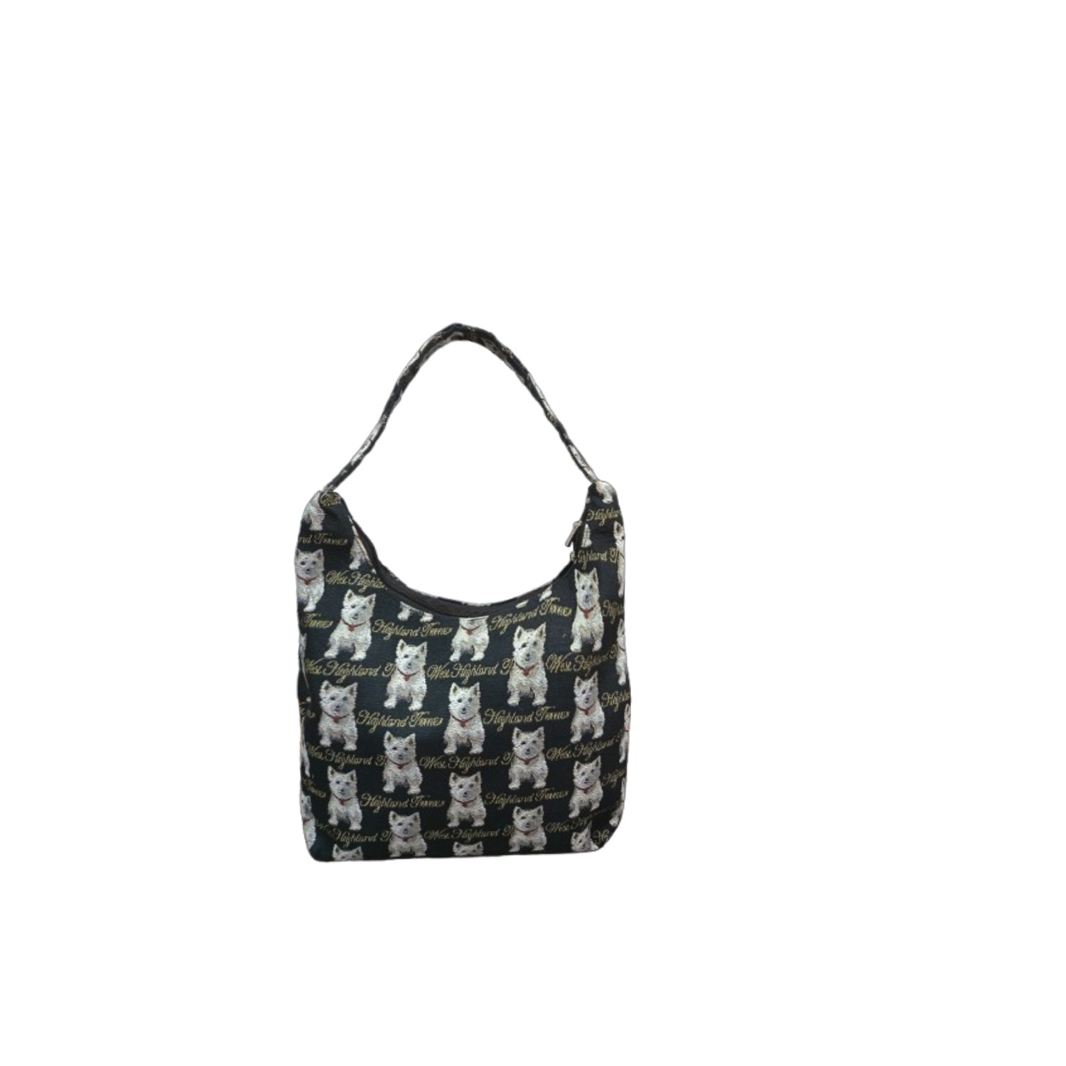 sac hobo, sac porté épaule en tapisserie,Le sac se ferme à l'aide d'une fermeture à glissière,poches intérieures multifunctions,motif:westie noir