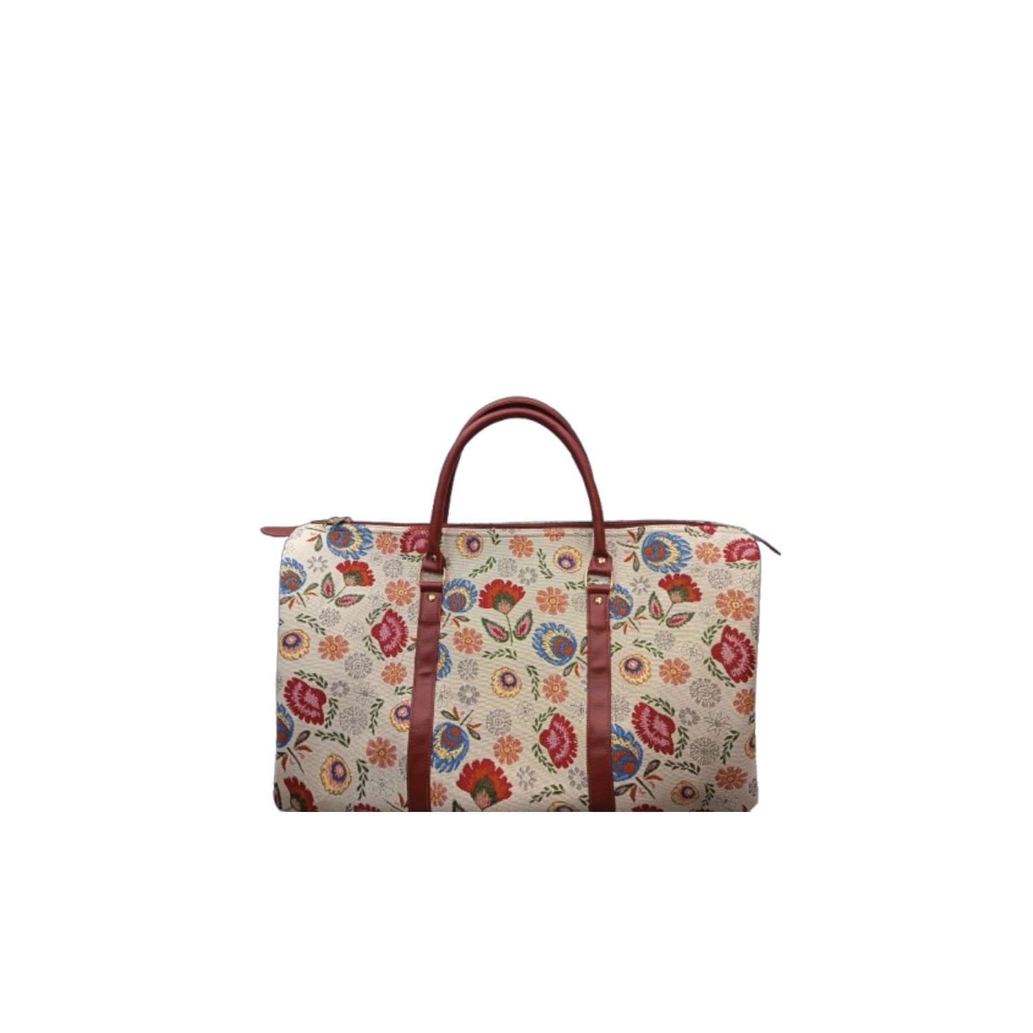 1 pièce(s) par paquet.Composition: 100% polyesterModèle: maison belgeCouleurs: coloreDimention(cm): 50*27*30sac voyage en tapisserie, 56x27x30cm,fermeture: zip,poignée en faux cuir motif: colore