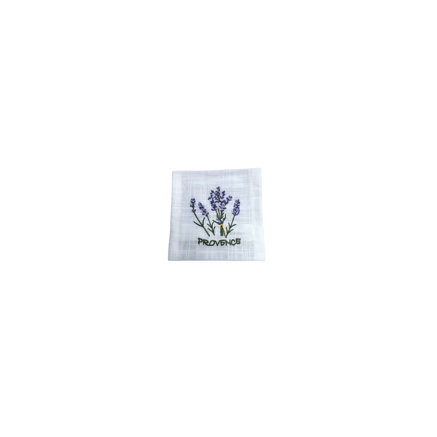 1 pièce(s) par paquet.Composition: 100% polyesterModèle: bouquet de lavandeCouleurs: blancDimention(cm): 12*12sachet lavande, motif brodé,interieur:fleur de lavande de provence, motif : bouquet de lavande
