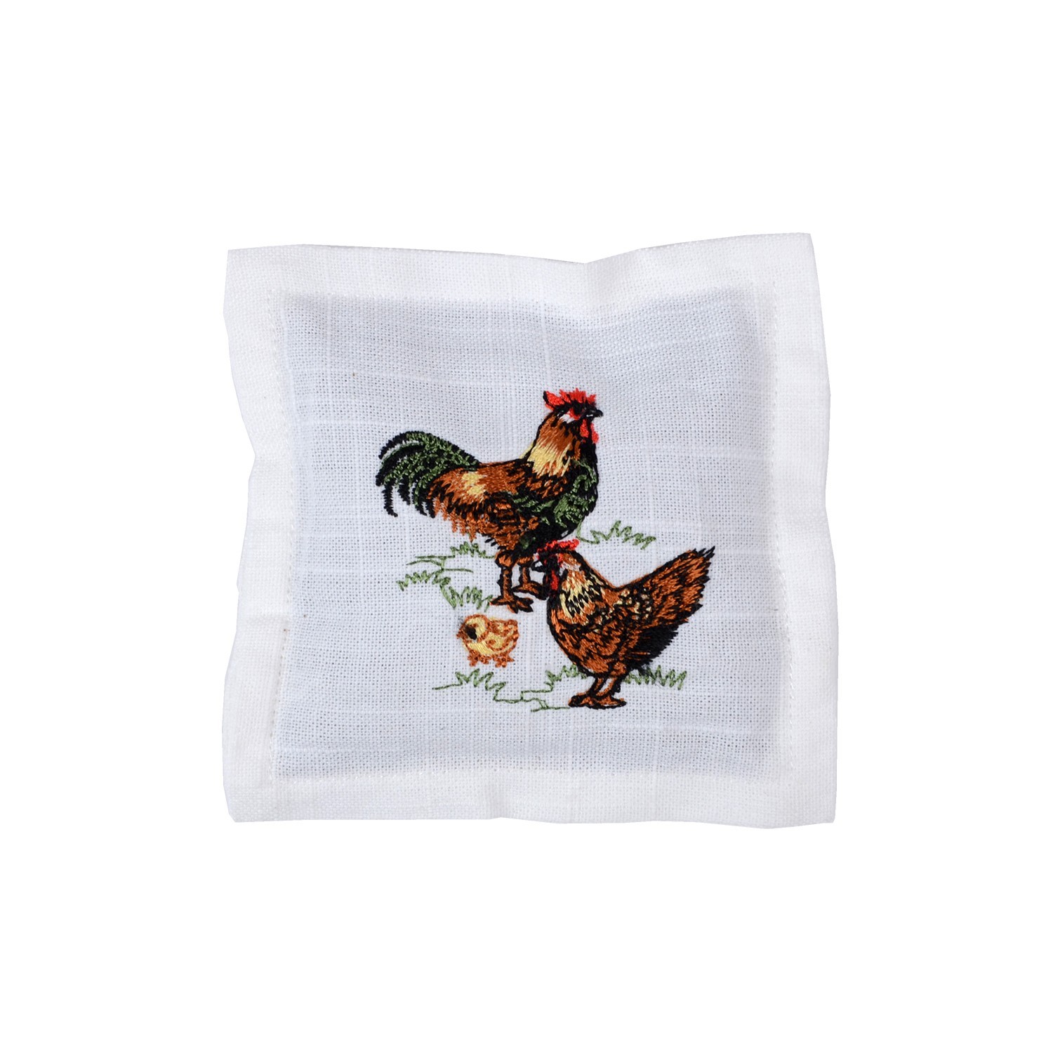 1 pièce(s) par paquet.Composition: 100% polyesterModèle: coq, pouleCouleurs: blancDimention(cm): 12*12sachet lavande, motif brodé,interieur:fleur de lavande de provence, motif : coq,poule
