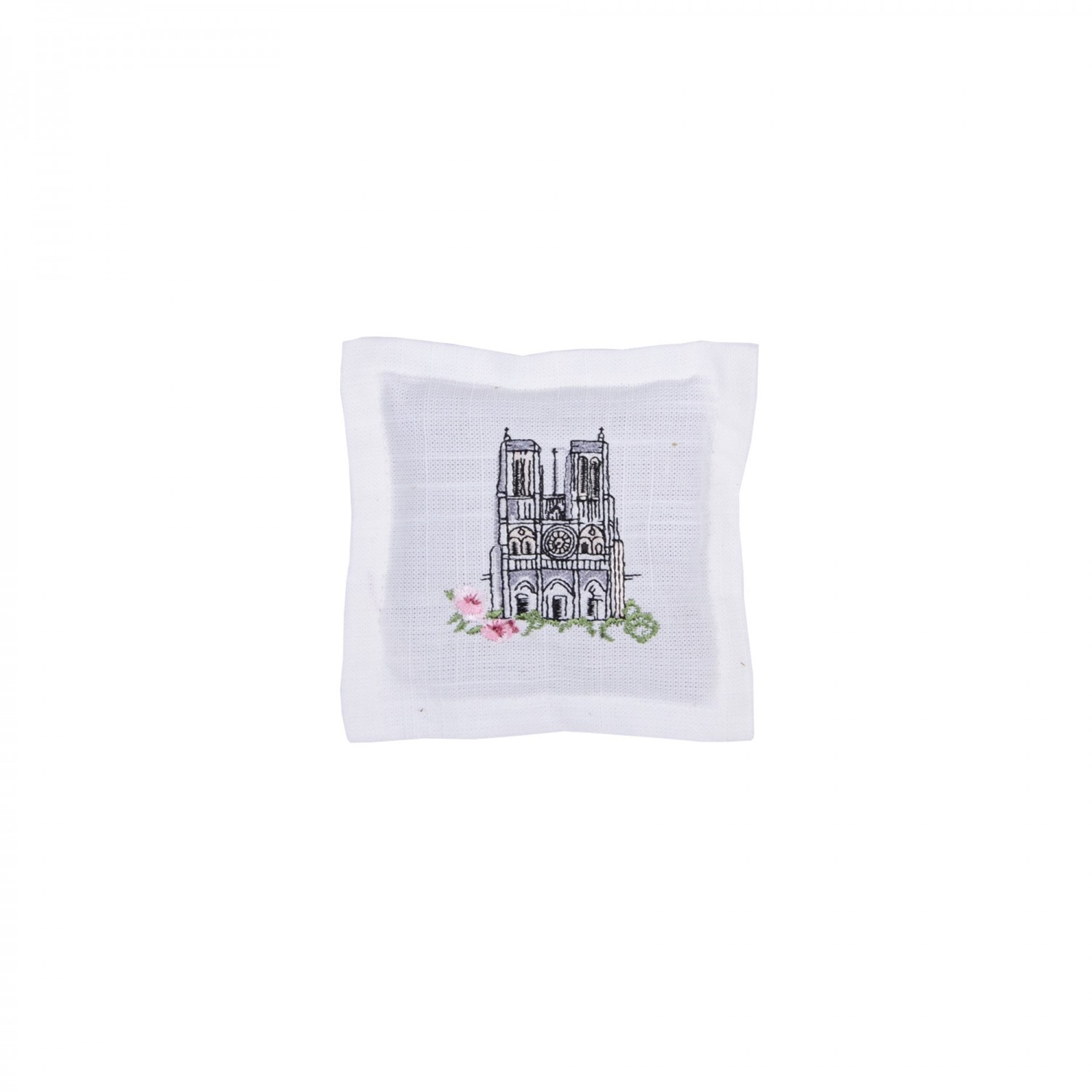 sachet lavande, motif brodé,interieur:fleur de lavande de provence, motif : notre dame