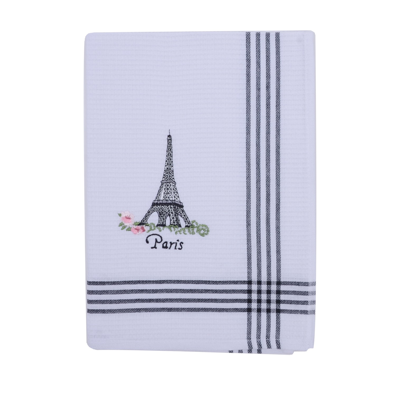 torchon tour eiffel paris brodé sur nid d'abeille,60° lavable