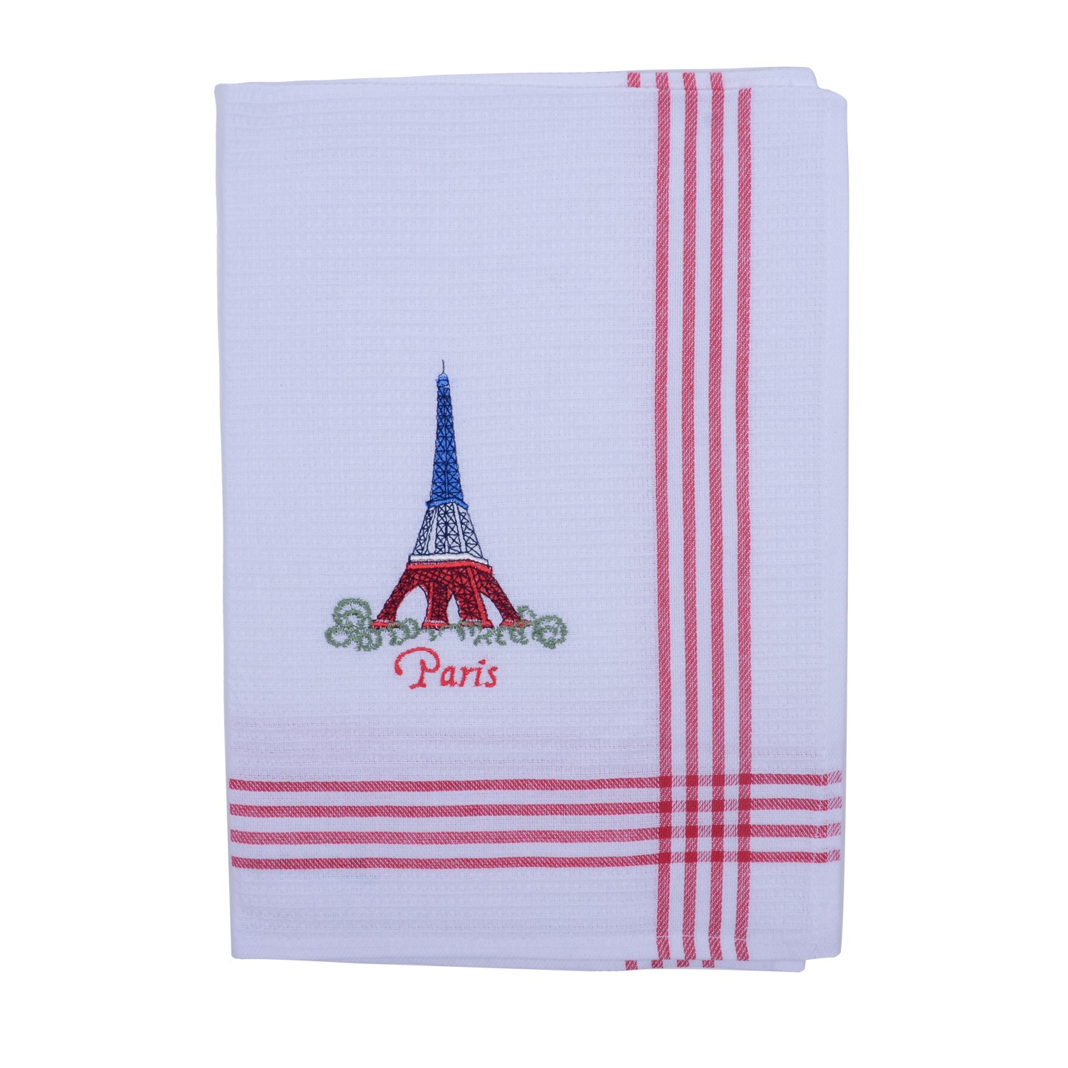 torchon tour eiffel trois couleur paris brodé sur nid d'abeille,60° lavable