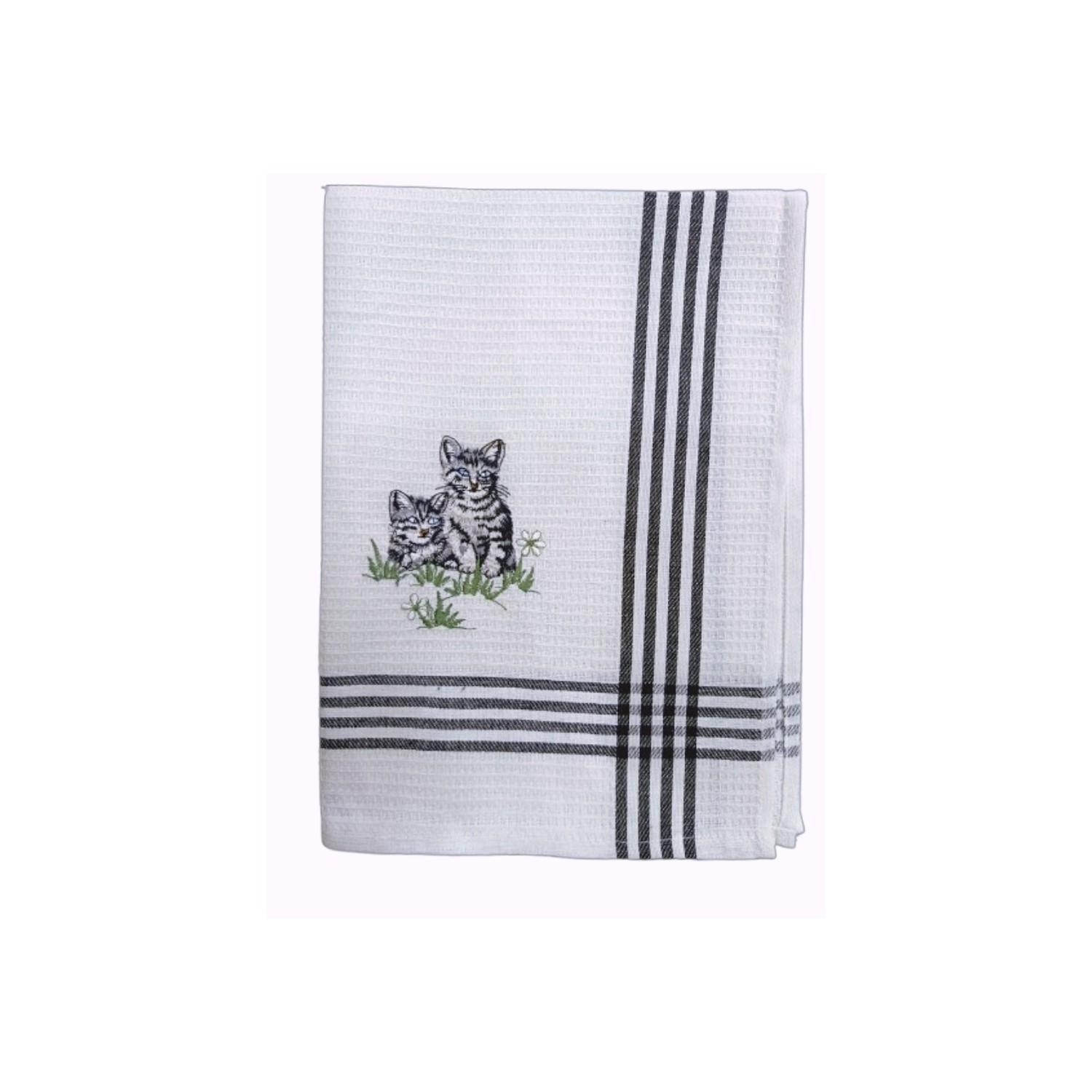 torchon deux chats brodé sur nid d'abeille,60°lavable