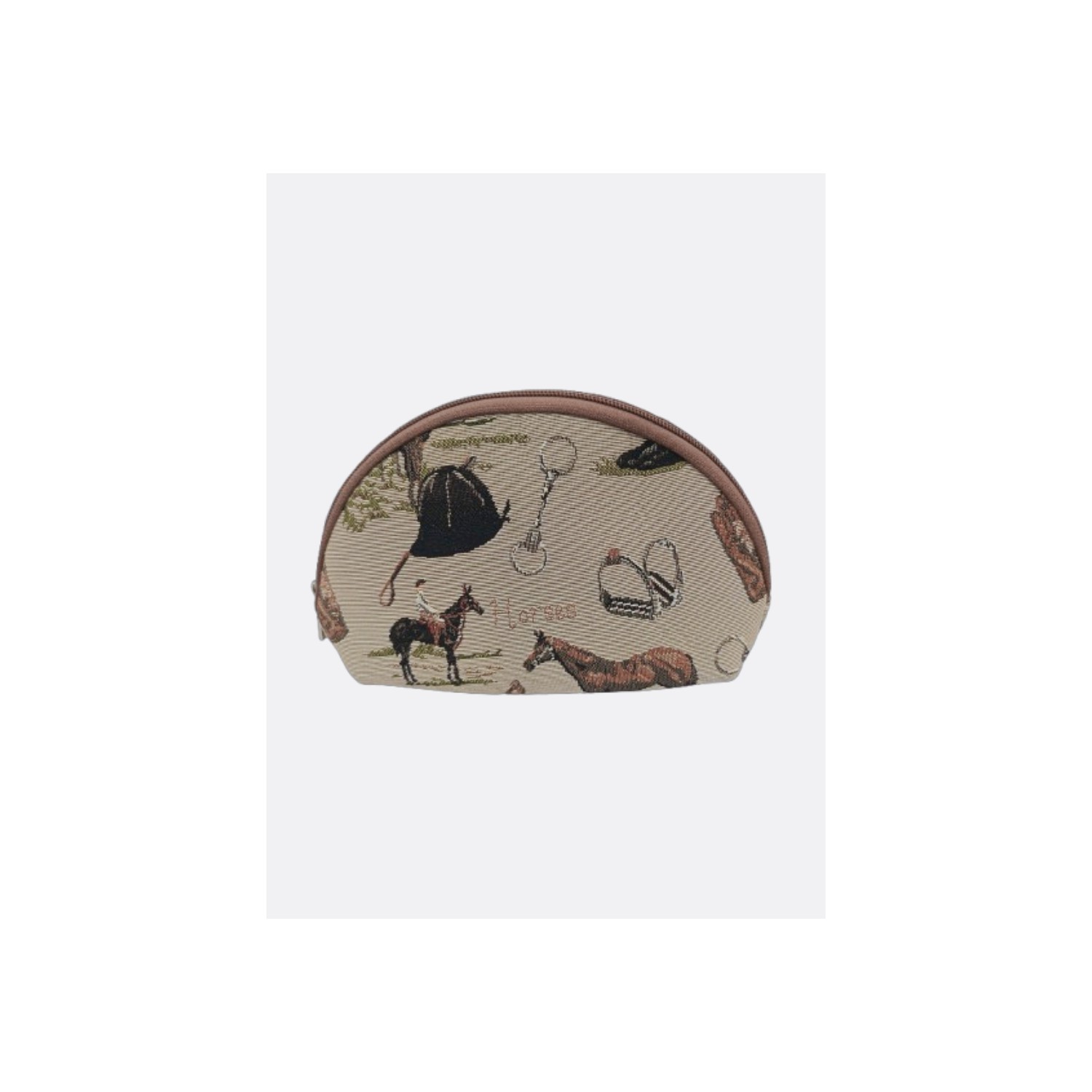 trousse cosmetique en tapisserie , fermeture:zip motif :les chevaux
