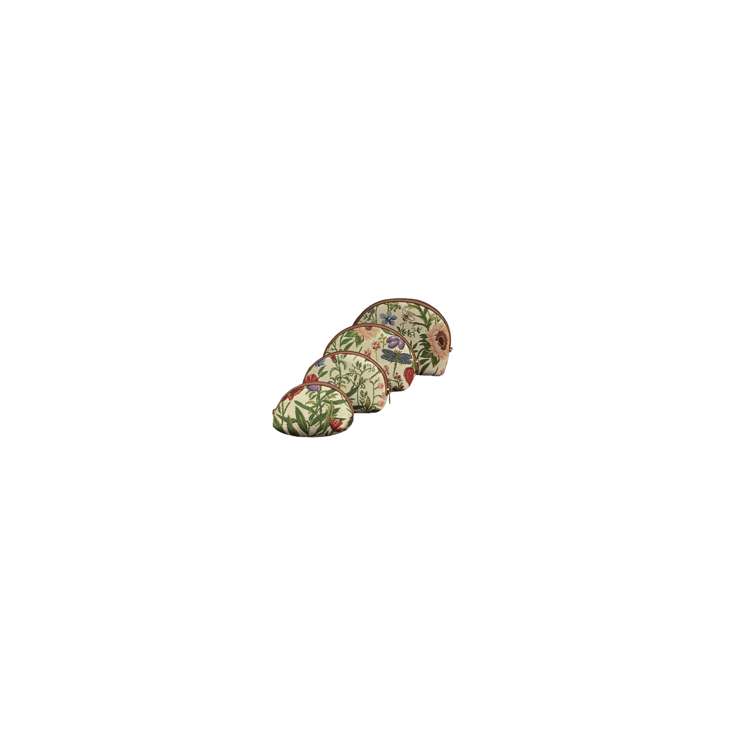 trousse cosmetique en tapisserie set de quatre pièces , fermeture:zip motif :les fleurs du jardin