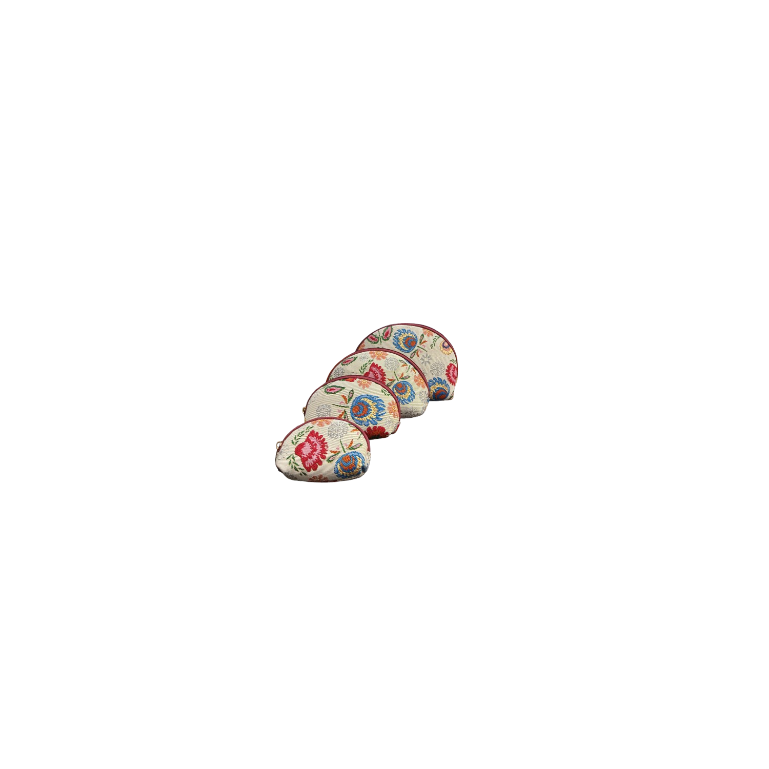 trousse cometique en tapisserie set de quatre pièces fermeture:zip motif :pensée beige